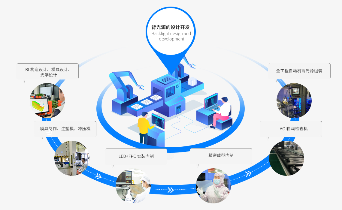 公司深耕背光顯示模組領(lǐng)域;通過(guò)持續(xù)不斷的技術(shù)創(chuàng)新;不斷加深的一體化生產(chǎn)能力;持續(xù)打造技術(shù)領(lǐng)先、質(zhì)量過(guò)硬、服務(wù)周全的優(yōu)質(zhì)產(chǎn)品。通過(guò)多年模具設(shè)計(jì)及制作經(jīng)驗(yàn),利用日本高精度模具加工等設(shè)備;緊貼客戶需求,重視產(chǎn)品組合開(kāi)發(fā),向客戶提供一站式專業(yè)產(chǎn)品及技術(shù)解決方案。